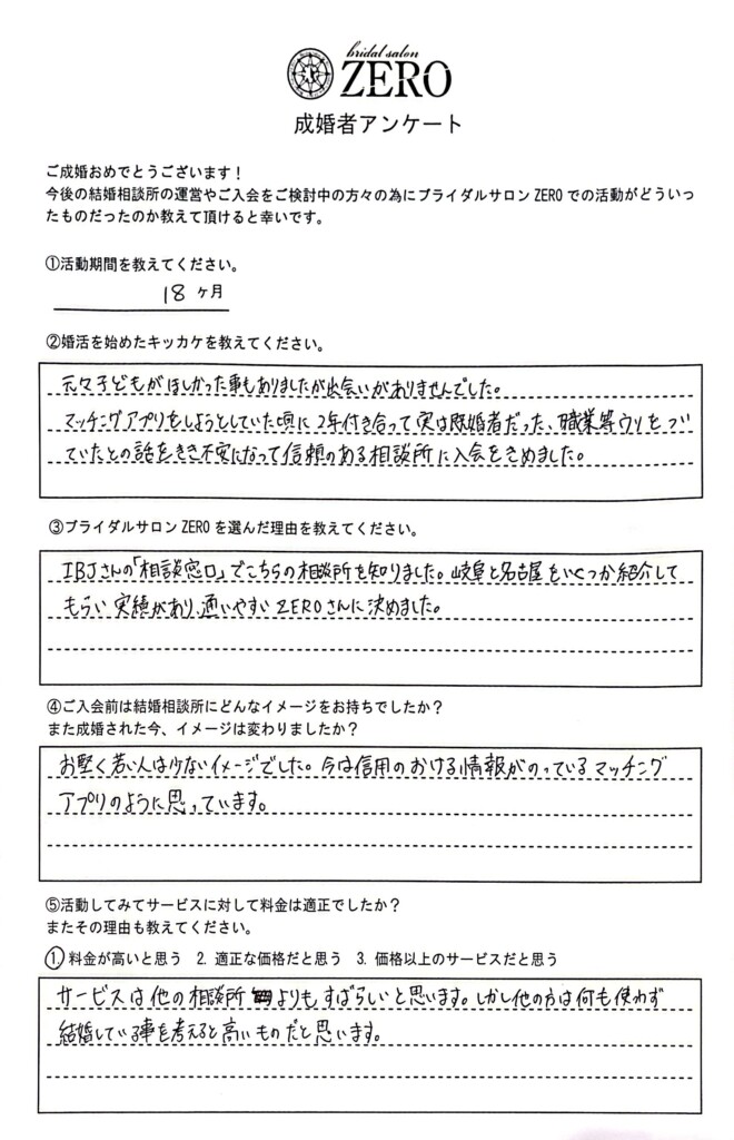 この度はご成婚ありがとうございました!