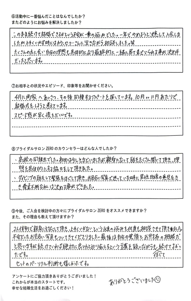 ⑨今後、ご入会を検討中の方々にブライダルサロンZEROをオススメできますか?